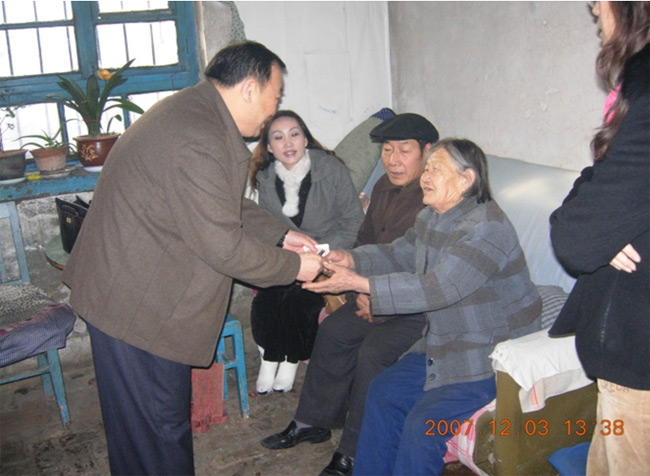 2002春節(jié)前夕,隆成集團(tuán)董事長劉輝親自給新疆哈密七角井化工廠的25名下崗職工送去 10000元的過節(jié)費(fèi);