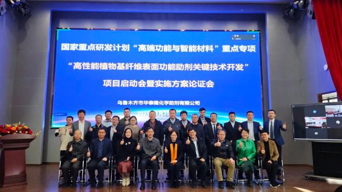 2025年3月20日,由華泰隆化學(xué)助劑有限公司牽頭承擔(dān)的國家重點(diǎn)研發(fā)計(jì)劃“高端功能與智能材料”重點(diǎn)專項(xiàng)“高性能植物基纖維表面功能助劑關(guān)鍵技術(shù)開發(fā)”項(xiàng)目啟動(dòng)暨實(shí)施方案論證會(huì)在烏魯木齊市新疆隆成集團(tuán)總部舉行。中國科學(xué)院院士、東華大學(xué)材料科學(xué)與工程學(xué)院院長朱美芳,國家自然科學(xué)基金委員會(huì)高技術(shù)研究發(fā)展中心副主任吳根、材料處處長雷瑾亮,自治區(qū)工業(yè)和信息化廳黨組成員、副廳長程多福,以及來自全國各地的行業(yè)專家等近30位嘉賓如約而至參加本次會(huì)議。