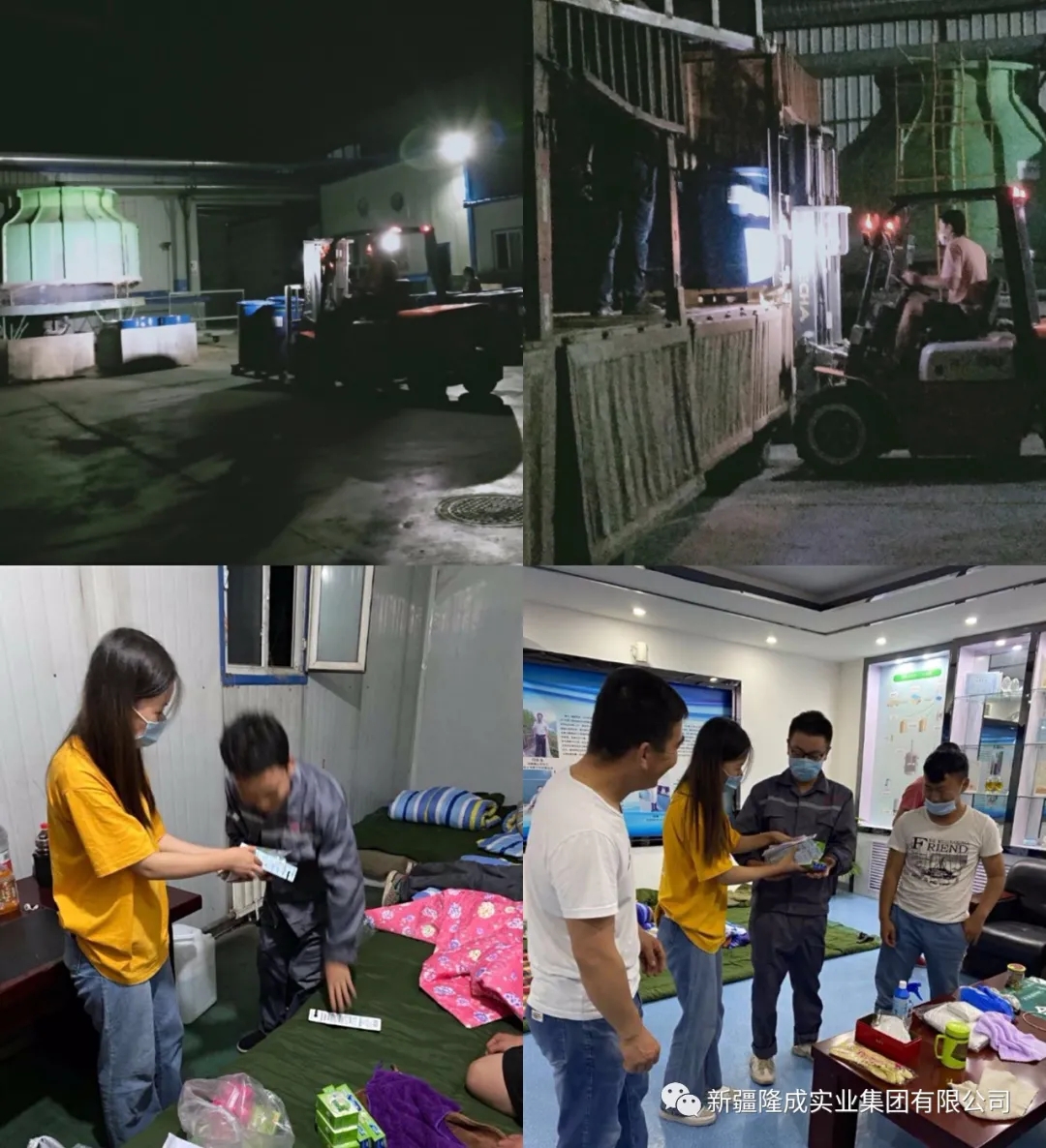 2020年7月29日凌晨,烏魯木齊疫情防控的第13天,天空掀起了夜幕,而在烏魯木齊市華泰隆化學助劑有限公司因為疫情防控保供工作,有77名員工全部住在了廠里,人事行政部連夜購置生活用品和被褥等物資,忙碌了一天的工友們擠在更衣室的大通鋪上稍作休整。