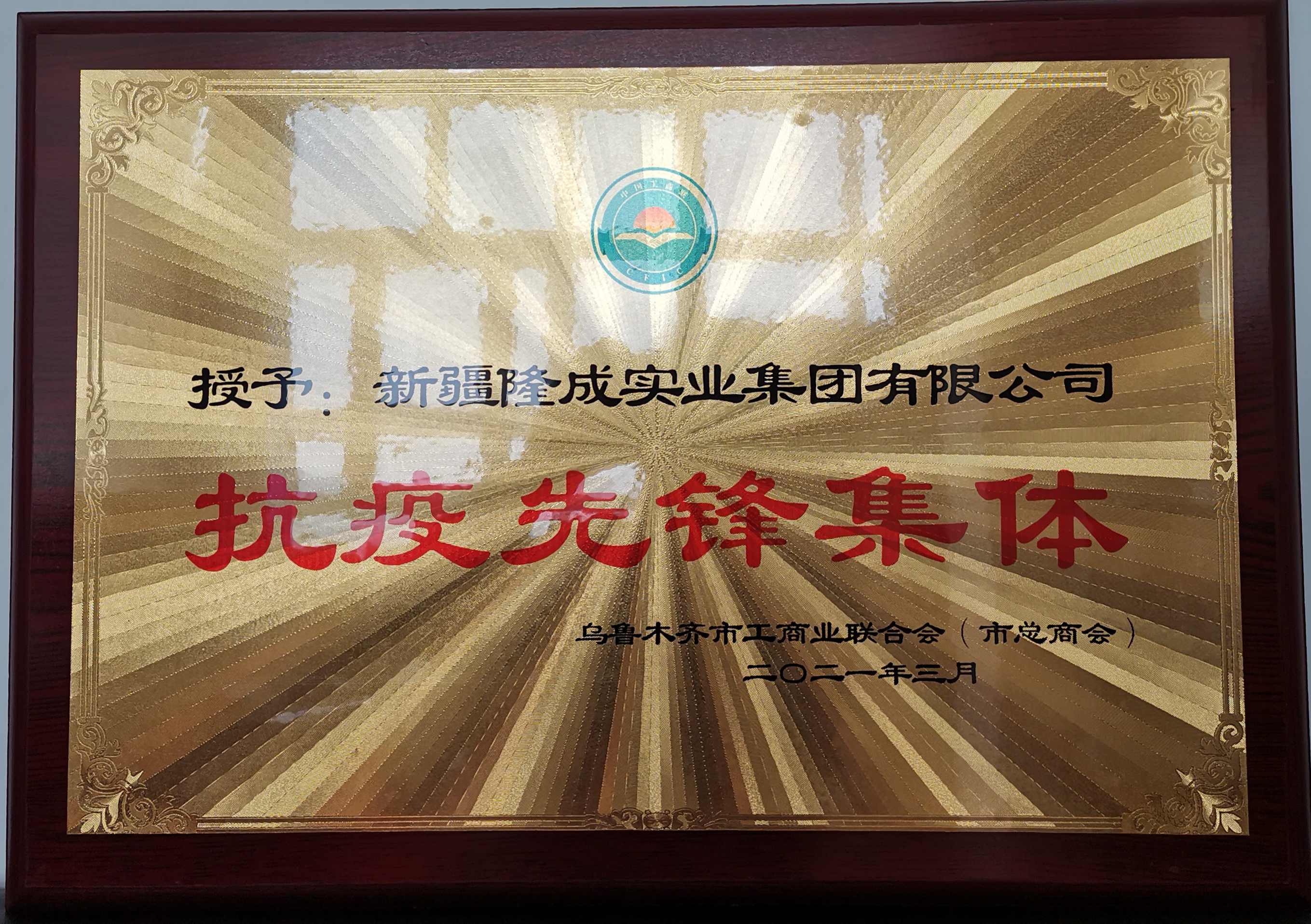 新疆隆成實(shí)業(yè)集團(tuán)有限公司被烏魯木齊市工商業(yè)聯(lián)合會(市總商會)評為“抗疫先鋒集體”榮譽(yù)稱號。